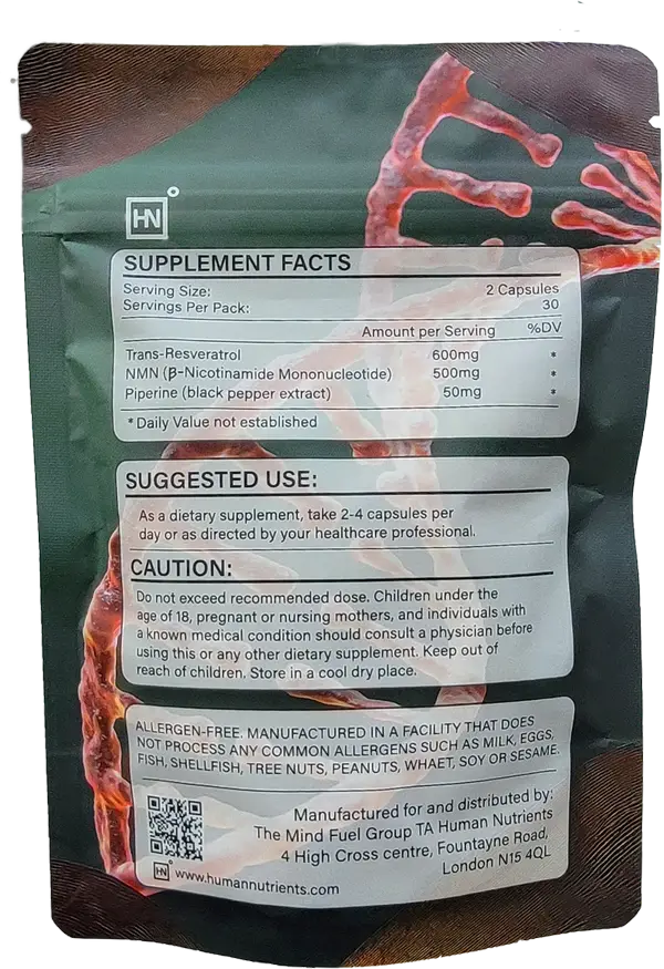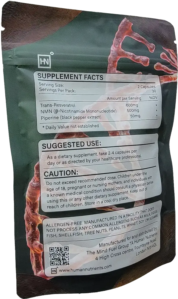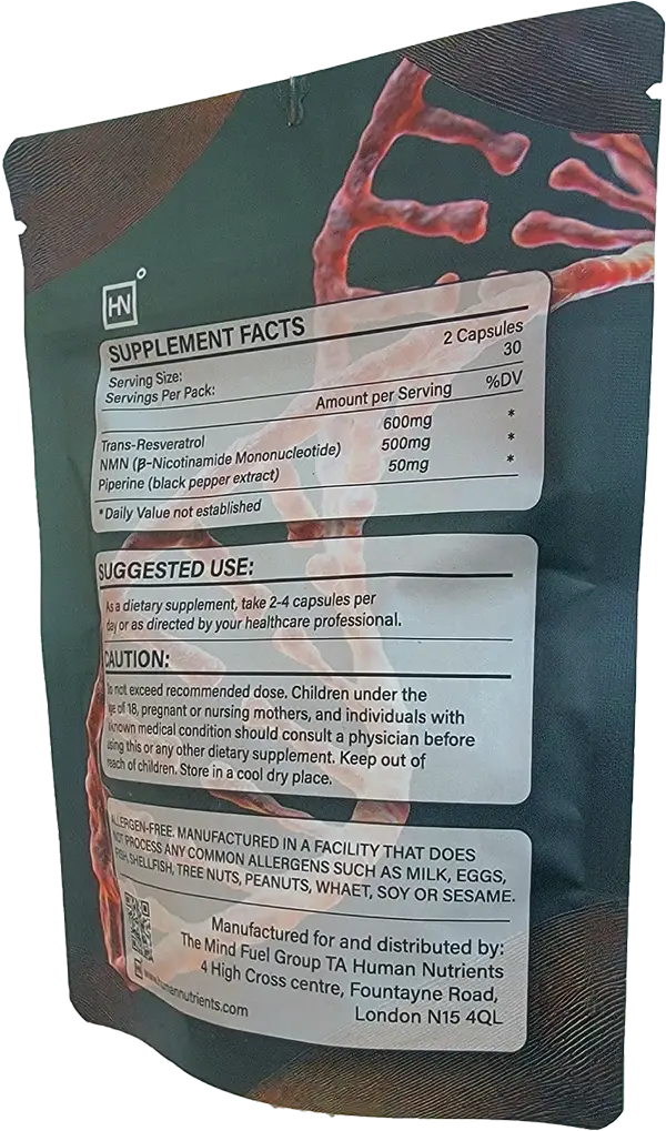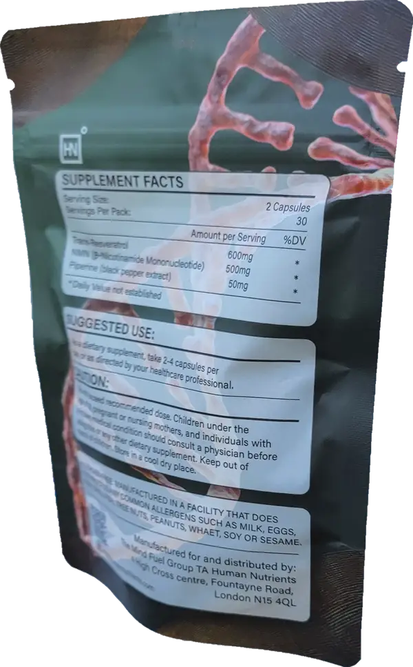 NMN and Resveratrol are generally well-tolerated. Some people may experience mild digestive adjustment in the first few days. As with any supplement, consult your healthcare provider if you have concerns.